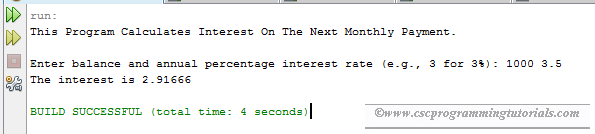 Write a program that reads the balance and the annual percentage interest rate and displays the interest for the next month.